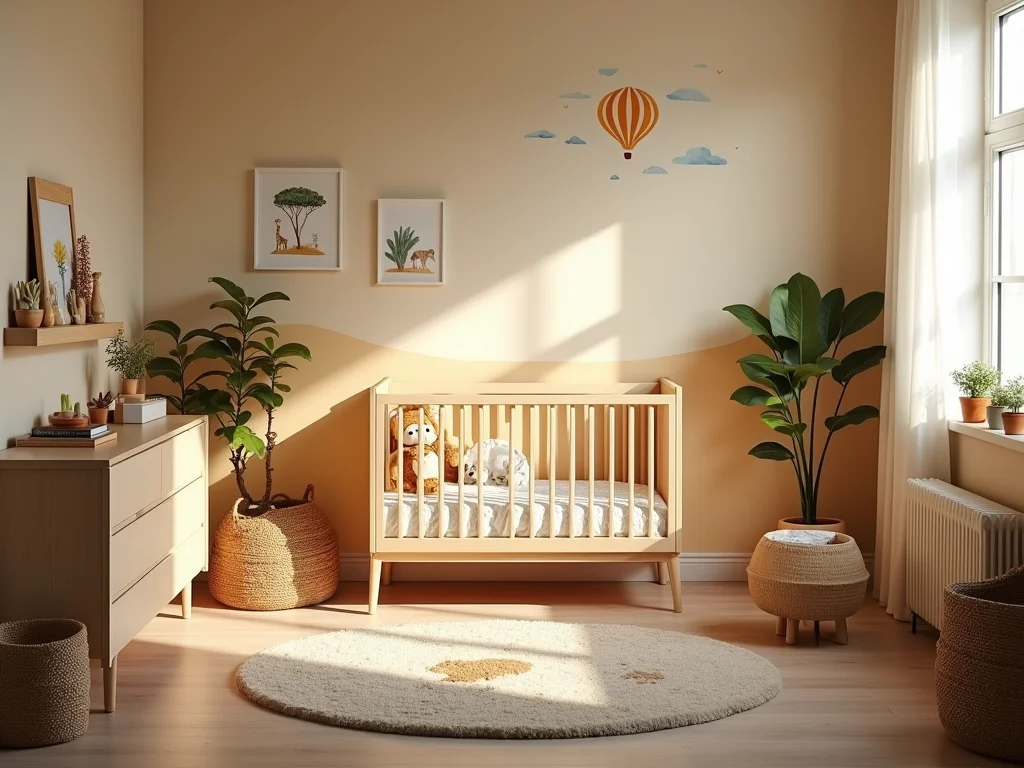 Para um quarto de bebê com tema de safári, a iluminação é crucial. Pense em luzes que imitem o pôr do sol africano. Tons quentes e suaves fazem toda a diferença. Evite luzes muito fortes ou frias. Elas podem deixar o ambiente tenso, e não é isso que queremos para o bebê, né?