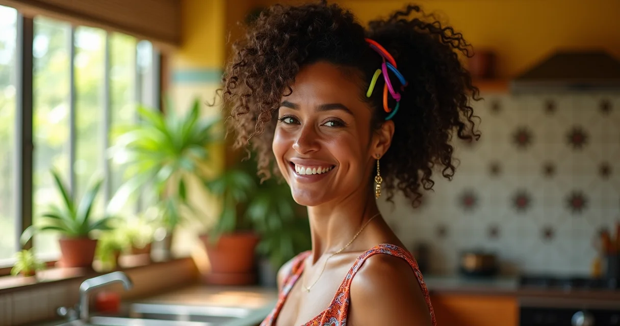 Divisões Definidas para Coques: Para fazer um coque baixo ou alto, use liguinhas para separar as mechas antes de torcer e prender. Isso garante que cada cacho fique no lugar e o penteado dure mais.