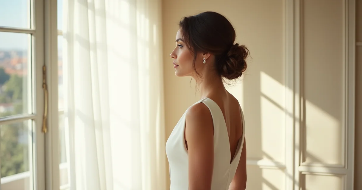 O grande segredo? Combine o penteado com o decote do vestido. Um decote em V pede penteados presos para criar uma linha contínua. Já um decote reto funciona melhor com semi-presos.